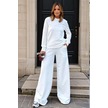 Kadın Uzun Kollu Sweatshirt , Bol Paça Beli Lastikli Cepli Pantolon - Alt & Üst Takım 3485500 Beyaz