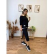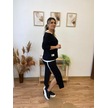 Kadın Uzun Kollu Tek Omuzu Açık Viskon Bluz Içi Atletli Ve Yandan Şeritli Üçlü Viskon Ikili Takım Siyah