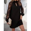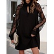 Kadın Uzun Kollu Tül Detay Sandy Mini Boy Elbise Siyah