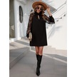 Kadın Yarım Balıkçı Yaka Süet Kumaş Fırsat Ürün Midi Boy Elbise Siyah