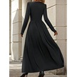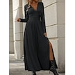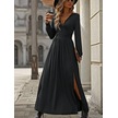 Kadın Uzun Kollu V Dantel Yakalı Yırtmaçlı Uzun Sandy Elbise Siyah