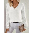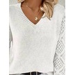 Kadın Uzun Kollu V Yaka Kol Delikli Baklava Desen Detaylı Triko Kazak Beyaz