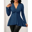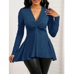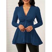 Kadın Uzun Kollu V Yakalı Çapraz Geçmeli Detaylı Ithal Krep Bluz Lacivert