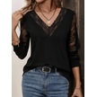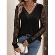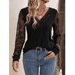 Kadın Uzun Kollu V Yakalı Dantel Detaylı Viskon Bluz Siyah