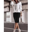 Kadın Uzun Kollu V Yakalı Iki Iplik Bluz Ve Şardonlu Kaşkorse Etek Ikili Takım Siyah