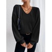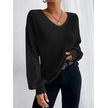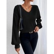 Kadın Uzun Kollu V Yakalı Salaş Şardonlu Kaşkorse Bluz Siyah