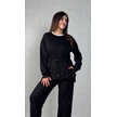 Kadın Uzun Kollu Yaka Ve Büzgü Detay Tunik Ve Pantolon Ikili Takım Siyah