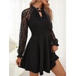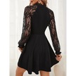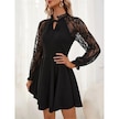 Kadın Uzun Kollu Yakadan Bağcıklı Dantel Detaylı Kısa İthal Krep Siyah