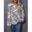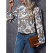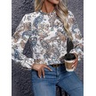 Kadın Uzun Kollu Yarı Balıkçı Yaka Desenli Süprem Bluz Desenli