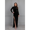 Kadın Uzun Kollu Yarım Balıkçı Yaka Derin Yırtmaç Detay Krep Tam Boy Elbise Siyah