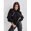 Kadın Uzun Kollu Zincir Detay Iki Iplik Bluz Siyah