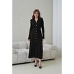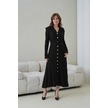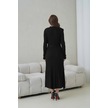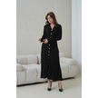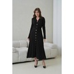 Kadın V Yaka Ful Düğme Kapama Kemer Detay Maksi Boy Fitilli Triko Elbise Siyah