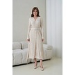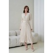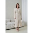 Kadın V Yaka Ful Düğme Kapama Kemer Detay Maksi Boy Fitilli Triko Elbise Taş