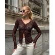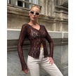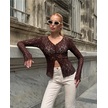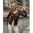 Kadın V Yaka Full Esnek Dantel Bürümcük Spor Şık Tasarım Asimetrik Kesim Gece Bluzu Kahverengi