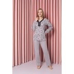Kadın V Yaka Puantiye Desen Bambu İnterlok Anne Pijama Takımı P5046-gri Gri