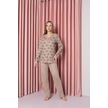 Kadın V Yaka Puantiye Desen Bambu İnterlok Anne Pijama Takımı P5046-vizon Vizon