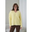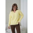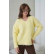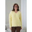 Kadın V Yaka Sakal Dokulu Şardonlu Oversize Triko Kazak 8695 Sarı