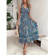 Kadın V Yaka Sıfır Kol Gipeli Desenli Süprem Elbise Mavi