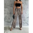 Kadın Varak Baskılı Leopar Desenli Mevsimlik Beli Lastikli Geniş Paça Pantolon Leopar
