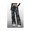 Kadın Varak Baskılı Siyah Renk Mevsimlik Beli Lastikli Geniş Paça Pantolon Siyah