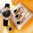 Kadın Vintage Yuvarlak Saat Analog Ve Kolye+küpe+yüzük Takı Altın - Siyah