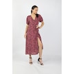 Kadın Kısa Kelebek Kollu Kruvaze Yaka Desenli Süprem Elbise Siyah