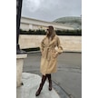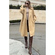 Kadın Vizon Balon Kol Beli Kemerli Midi Kaşe Kaban Astarsız Sütlü Kahverengi