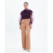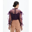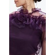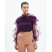 Kadın Volan Detaylı Şifon Bluz Çiçek Yaka Tasarım, Uzun Kollu Mor