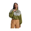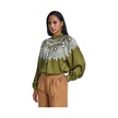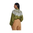 Kadın Yaka Büzgülü Desenli Bluz Salaş Kesim Ve Yüksek Yaka Detaylı Haki