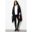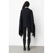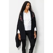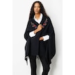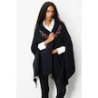 Kadın Yakası İşlemeli Koldan Geçmeli Büyük Yün Panço Siyah Siyah