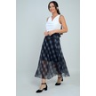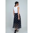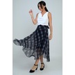 Kadın Yanları Kısa Astarlı Ekose Uzun Tül Etek-41721 Siyah
