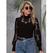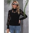 Kadın Yarım Balıkçı Yaka Dantelli Uzun Kollu Viskon Bluz Siyah