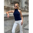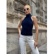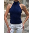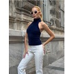 Kadın Yarım Balıkçı Yaka Full Esnek Sakallı Sırt Dekolteli Spor Şık Tasarım Sırtı Açık Bluz Lacivert