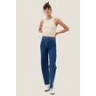 Kadın Yavruağzı Fitilli T-shirt Halter Yaka Örme Atlet Kırık Beyaz
