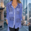 Kadın Yaz Baskılı Gevşek Günlük Smokin Gömlek Mor Mavi