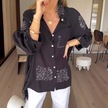 Kadın Yaz Baskılı Gevşek Günlük Smokin Gömlek Siyah