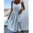 Kadın Yaz Baskılı Seksi Boyundan Bağlamalı Günlük Bölünmüş Elbiseler Beyaz