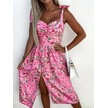 Kadın Yaz Baskılı Seksi Boyundan Bağlamalı Günlük Bölünmüş Elbiseler Gül