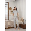 Kadın Yazlık Kısa Kol Penye Süprem Kumaş Pijama Takımı Haki Kalpli