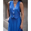 Kadın Yelekli Maxi Etekli Takım Mavi