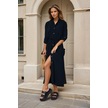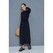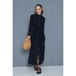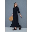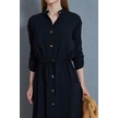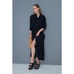 Kadın Yeni Sezon Krep Cepli Uzun Katlanabilir Kollu Büzgülü Elbise Yazlık Günlük Giyçık Siyah