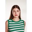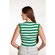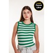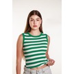 Kadın Yeşil Beyaz Çizgili Fitilli Likralı Sıfır Kol Bisiklet Yaka Örme Atlet Tshirt Bluz Yeşil - Beyaz