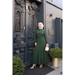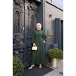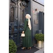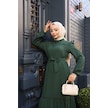 Kadın Yeşil Boydan Düğmeli Eteği Piliseli Kuşaklı Lara Keten Uzun Tesettür Elbise Yeşil