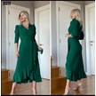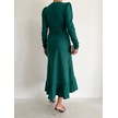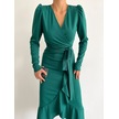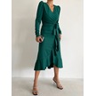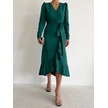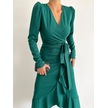 Kadın Yeşil Krep Kumaş Midi Boy Kuşaklı Uzunkol Elbise Yeşil