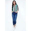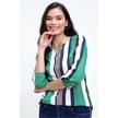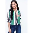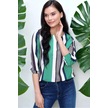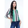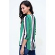 Kadın Yeşil & Lacivert Yakası Yırtmaçlı Krep Bluz Truvakar Kol Çizgili Ve Giy Çık - Tesettüre Uygun Siyah - Yeşil