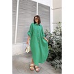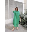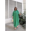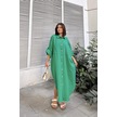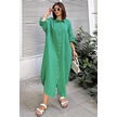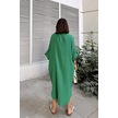 Kadın Yeşil Muslin Kumaş, Yarasa Kol, Eteği Oval, Çift Cepli, Uzun Oversize Salaş Gömlek Elbise Yeşil