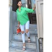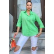 Kadın Yeşil Truvakar Kol, Oval Kesim, Terletmez, Flamlı Keten Salaş Gömlek Yeşil