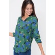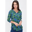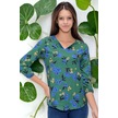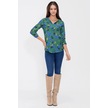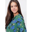 Kadın Yeşil Yakası Yırtmaçlı Krep Bluz Truvakar Kol Çicekli Ve Giy Çık - Tesettüre Uygun Yeşil