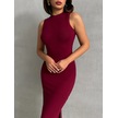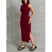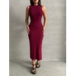 Kadın Yırtmaç Detaylı Kolsuz Soft Touch Esnek Elbise Bordo