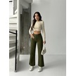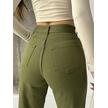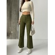 Kadın Yüksek Bel Keten Boyfriend Bol Paça Haki